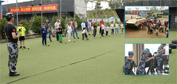 體驗(yàn)乘坐坦克、裝甲車、火炮及殲10戰(zhàn)斗機(jī)(合影);